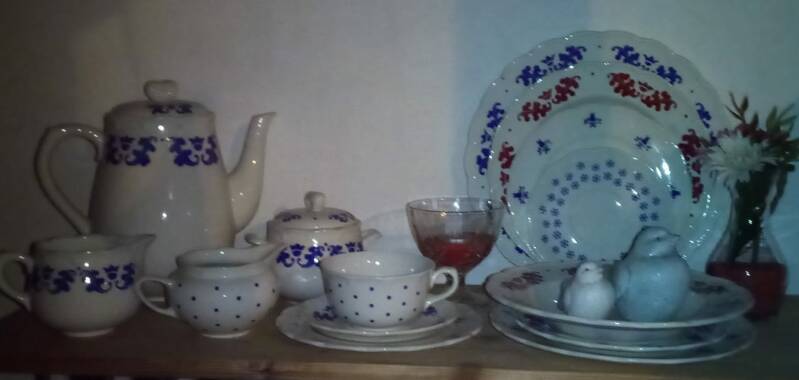 het gaat om authentiek servies hou er rekening mee dat er hier en daar beboterde stukken kunnen zijn